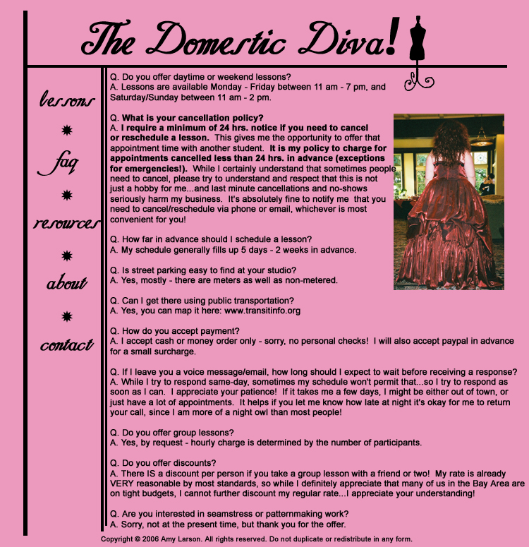 Lessons Frequently Asked Questions Resources About the Domestic Diva Contact the Domestic Diva Main Page